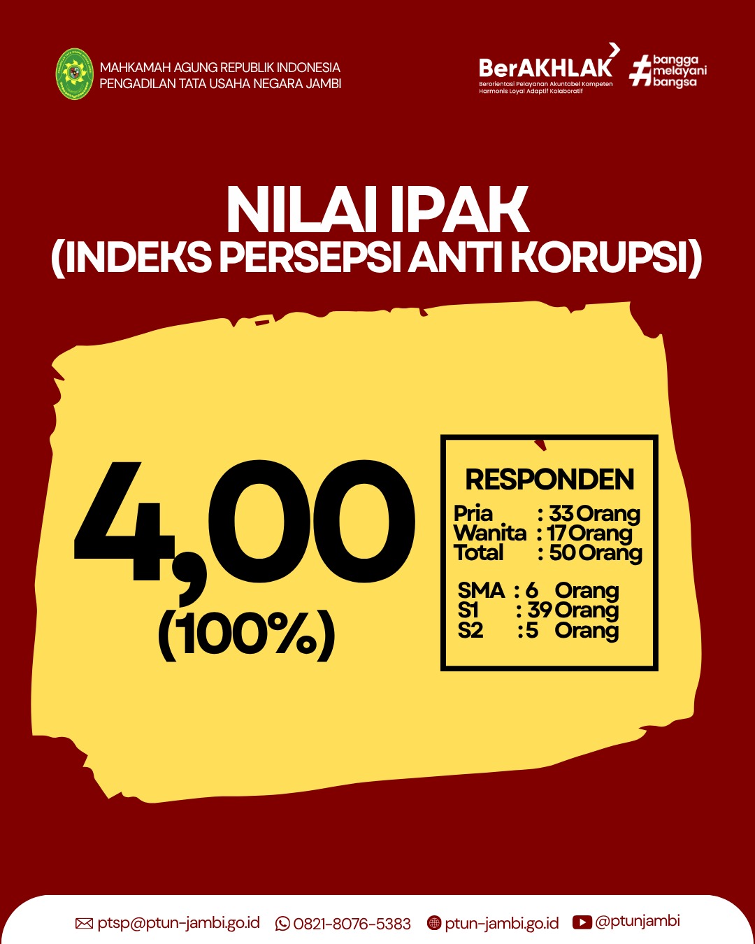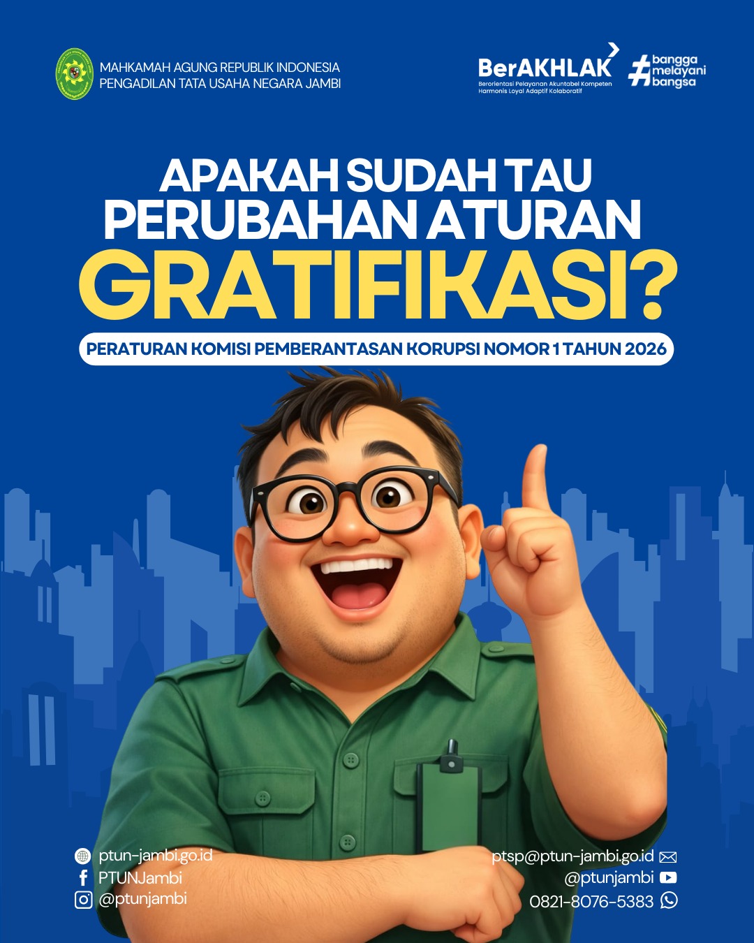 Pengadilan Tata Usaha Negara (PTUN) Jambi dengan ini menyampaikan informasi mengenai perubahan aturan gratifikasi yang perlu diketahui oleh seluruh Aparatur