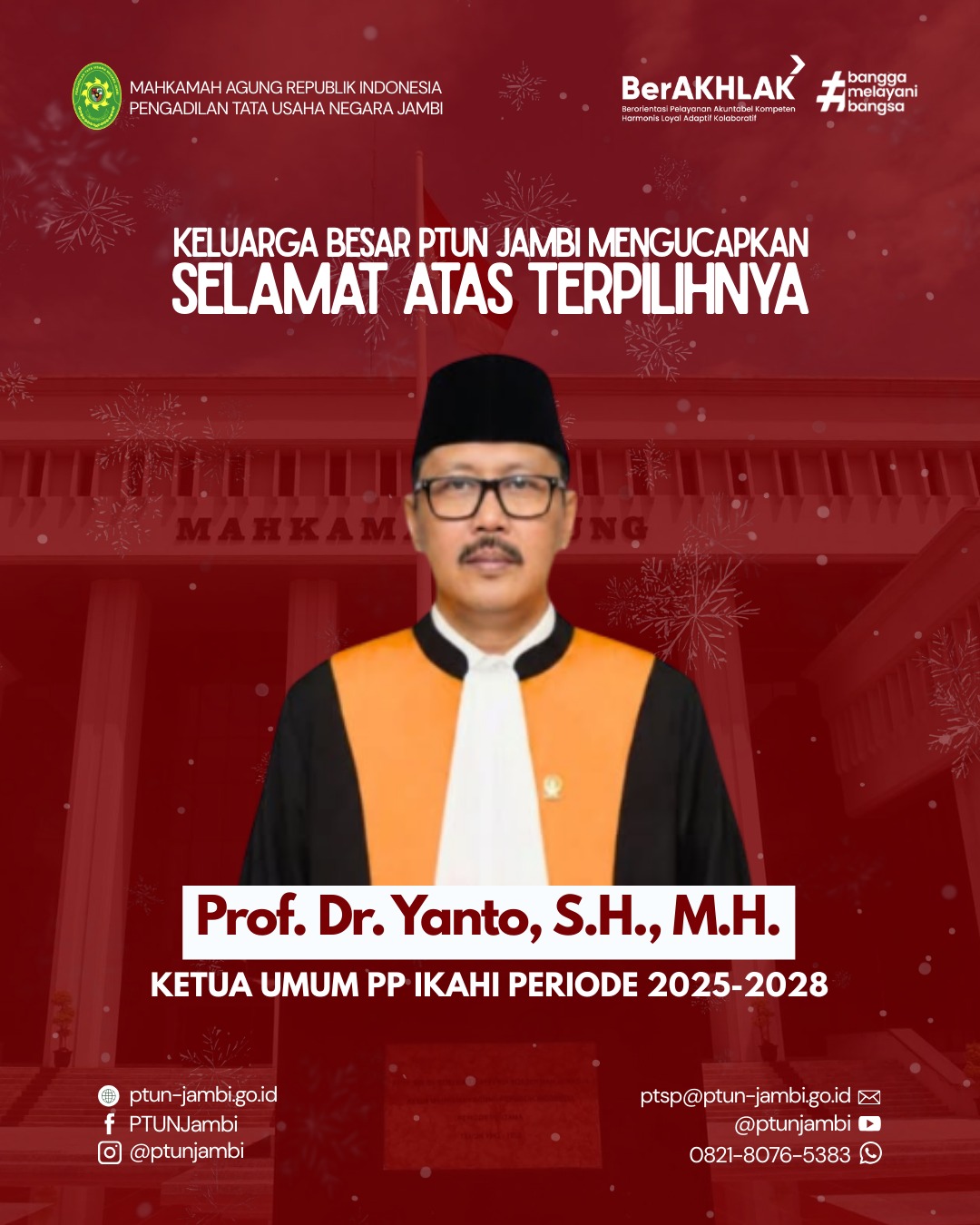 Semoga senantiasa diberikan kesehatan, keteguhan, dan kebijaksanaan dalam mengemban amanah sebagai Ketua Umum Pengurus Pusat Ikatan Hakim Indonesia, serta mampu memimpin IKAHI sebagai organisasi profesi yang solid, berintegritas, dan berwibawa, dalam menjaga kehormatan dan keluhuran martabat hakim, memperkuat independensi peradilan, serta mendukung terwujudnya peradilan yang agung, profesional, dan berkeadilan bagi seluruh masyarakat Indonesia.