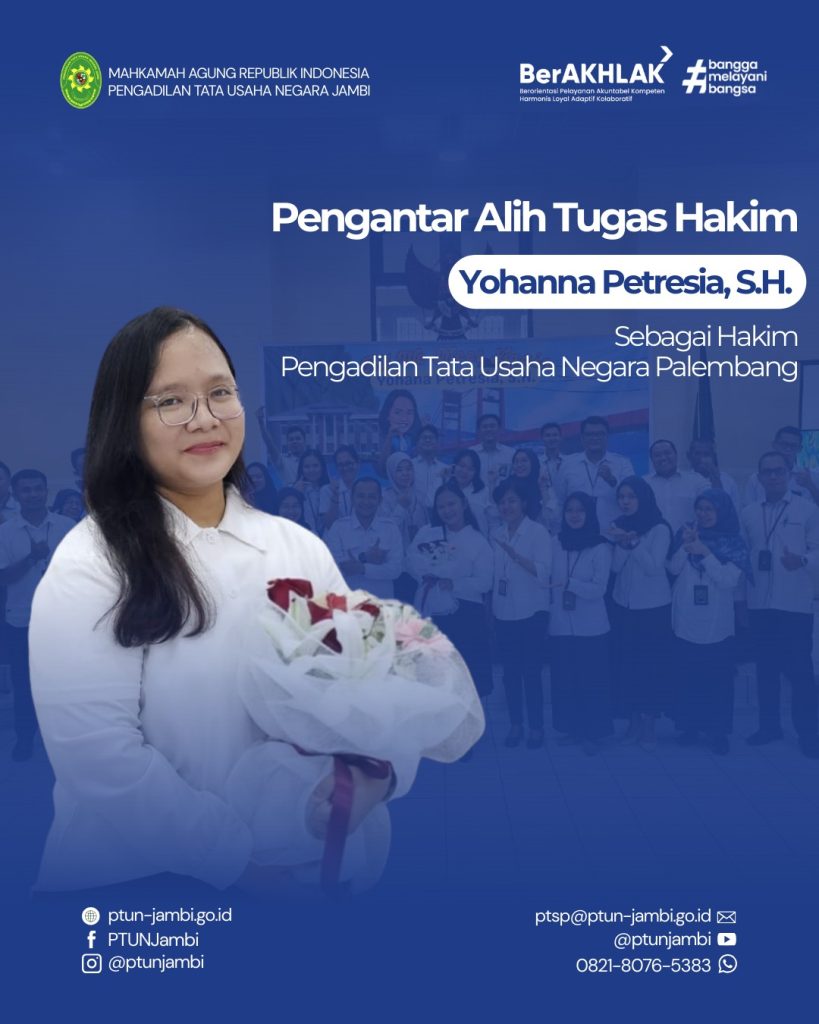 Pengantar Alih Tugas Ibu Yohanna Petresia, S.H. Menjadi Hakim Pengadilan Tata Usaha Negara Palembang