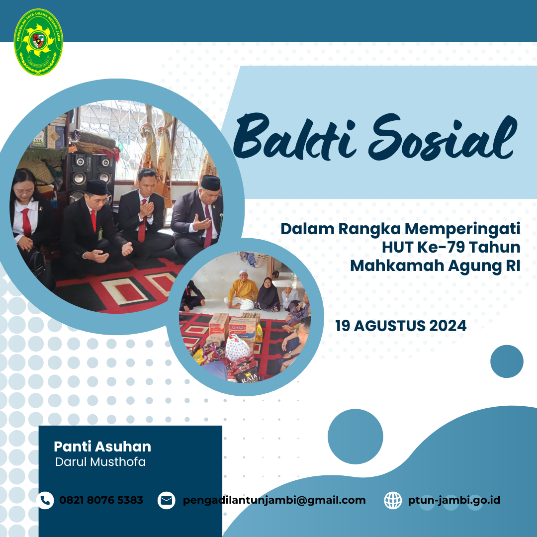 Kegiatan bakti sosial berupa pemberian sembako kepada panti asuhan ini dilaksanakan dalam rangka memperingati Hari Ulang Tahun ke-79 Mahkamah Agung Republik Indonesia.