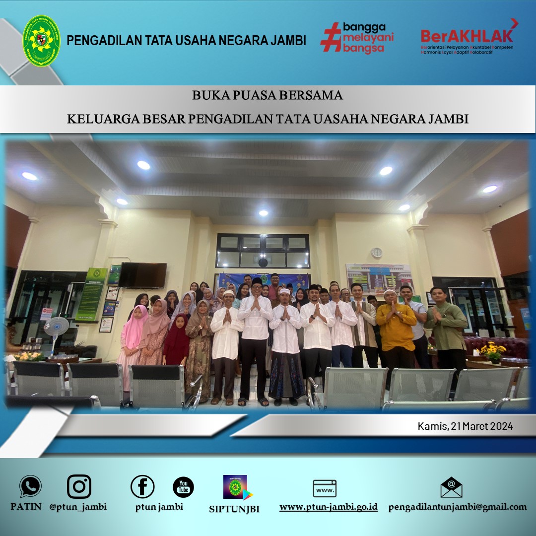 Pengadilan Tata Usaha Negara Jambi Melaksanakan Kegiatan Buka Puasa Bersama dan dilanjutkan dengan Sholat Tarawih bersama.