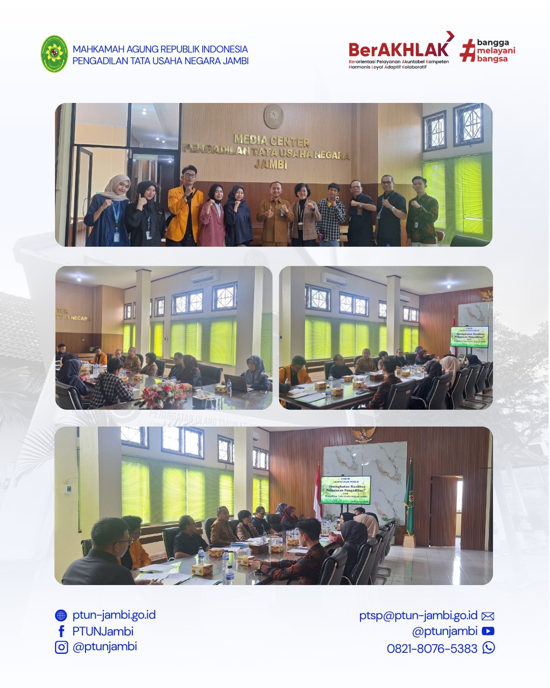 Pengadilan Tata Usaha Negara (PTUN) Jambi menyelenggarakan Forum Konsultasi Publik (FKP) Peningkatan Kualitas Pelayanan Pengadilan sebagai wujud komitmen dalam menghadirkan pelayanan yang transparan, responsif, dan berorientasi pada kebutuhan masyarakat. Kegiatan ini dilaksanakan dengan mengundang perwakilan dari berbagai unsur pengguna layanan yaitu perwakilan instansi pemerintahan, perwakilan organisasi bantuan hukum, serta perwakilan lingkungan akademik.