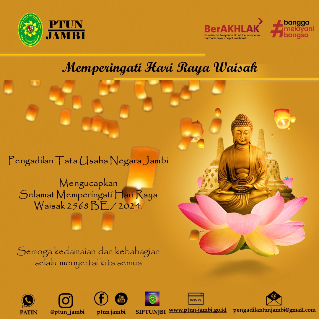 Berita Hari Raya Waisak Pengadilan Tata Usaha Jambi Mengucapkan Selamat Hari Raya Waisak 2568 BE / 23 Mei 2023. Semoga Kedamaian dan Kebahagiaan Selalu Lanjutkan Membaca administrator 23 Mei 2024