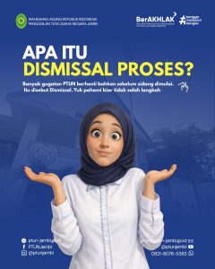 Pengadilan Tata Usaha Negara (PTUN) Jambi dengan ini menyampaikan informasi mengenai Dismissal Proses, yaitu tahapan pemeriksaan awal perkara di Peradilan Tata Usaha Negara yang dilakukan untuk menilai kelengkapan serta terpenuhinya syarat formil dan materiil suatu gugatan sebelum dilanjutkan ke tahap pemeriksaan persidangan.
