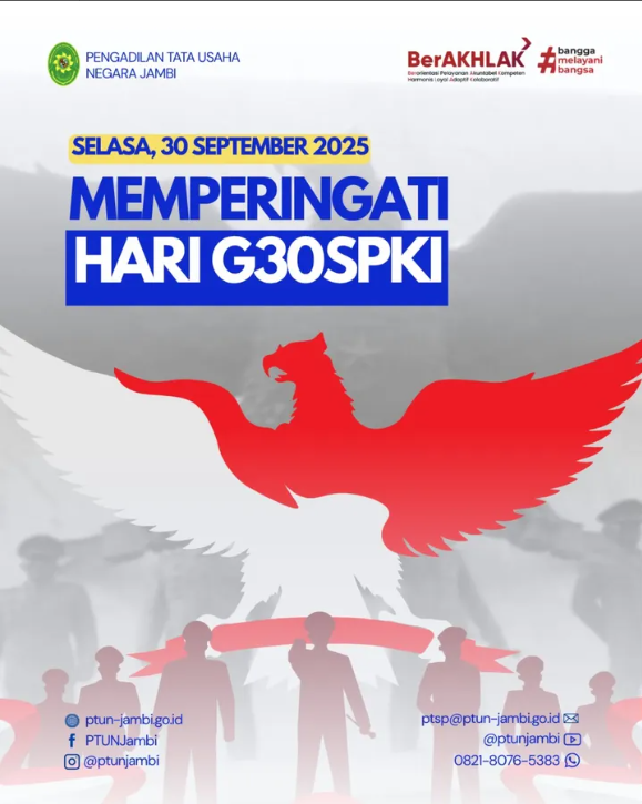 Melalui Peringatan hari bersejarah ini, PTUN Jambi memberikan Penghormatan setinggi-tingginya kepada Pahlawan Revolusi yang telah gugur membela ideologi negara.