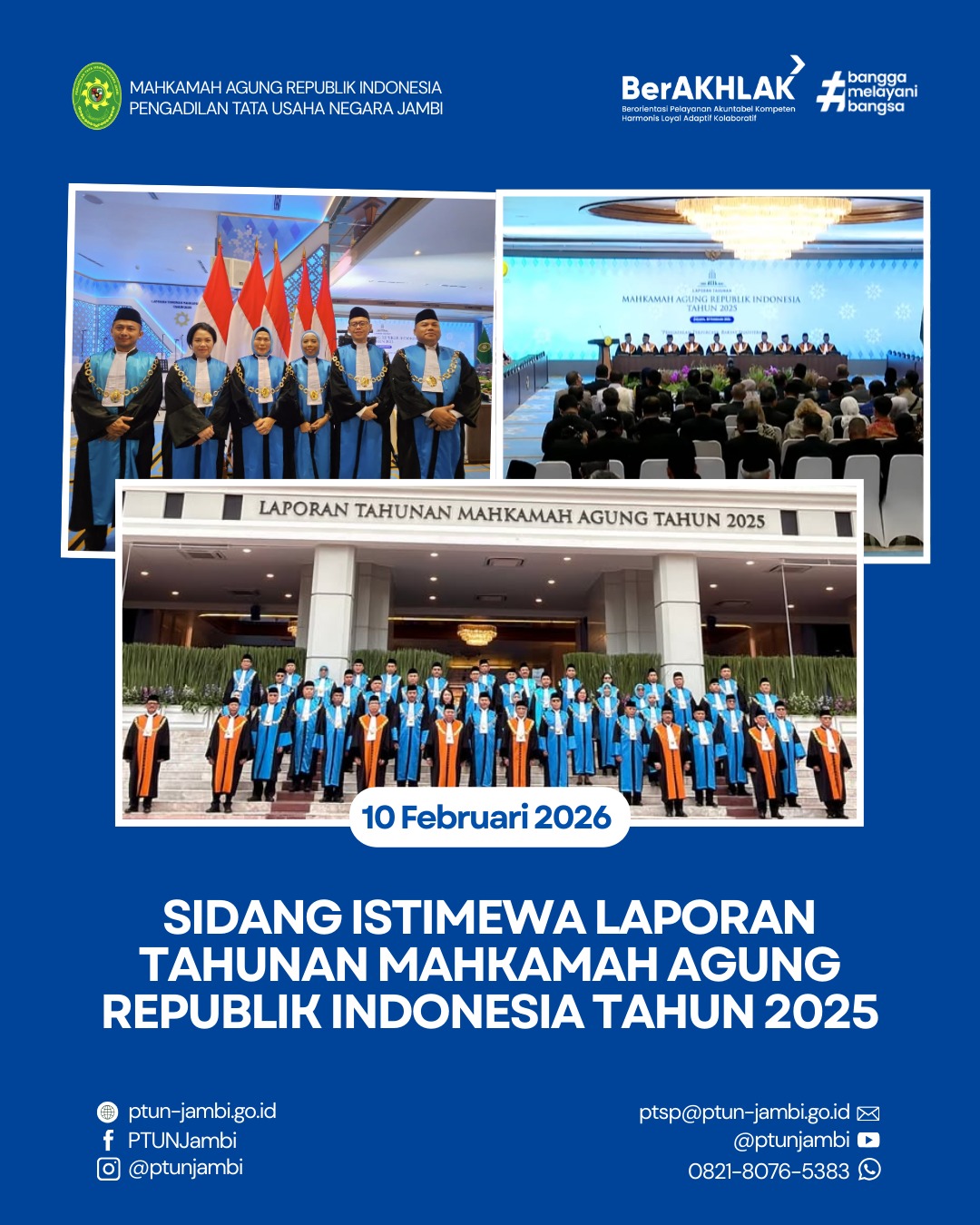 Selasa, 10 Februari 2026 — Mahkamah Agung Republik Indonesia menyelenggarakan Sidang Istimewa Laporan Tahunan Mahkamah Agung Republik Indonesia Tahun 2025 sebagai bentuk pertanggungjawaban kinerja lembaga peradilan kepada publik.