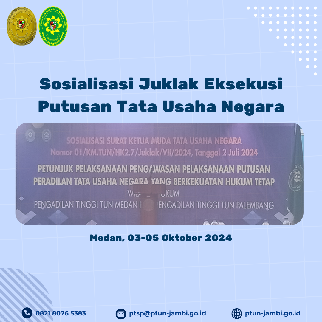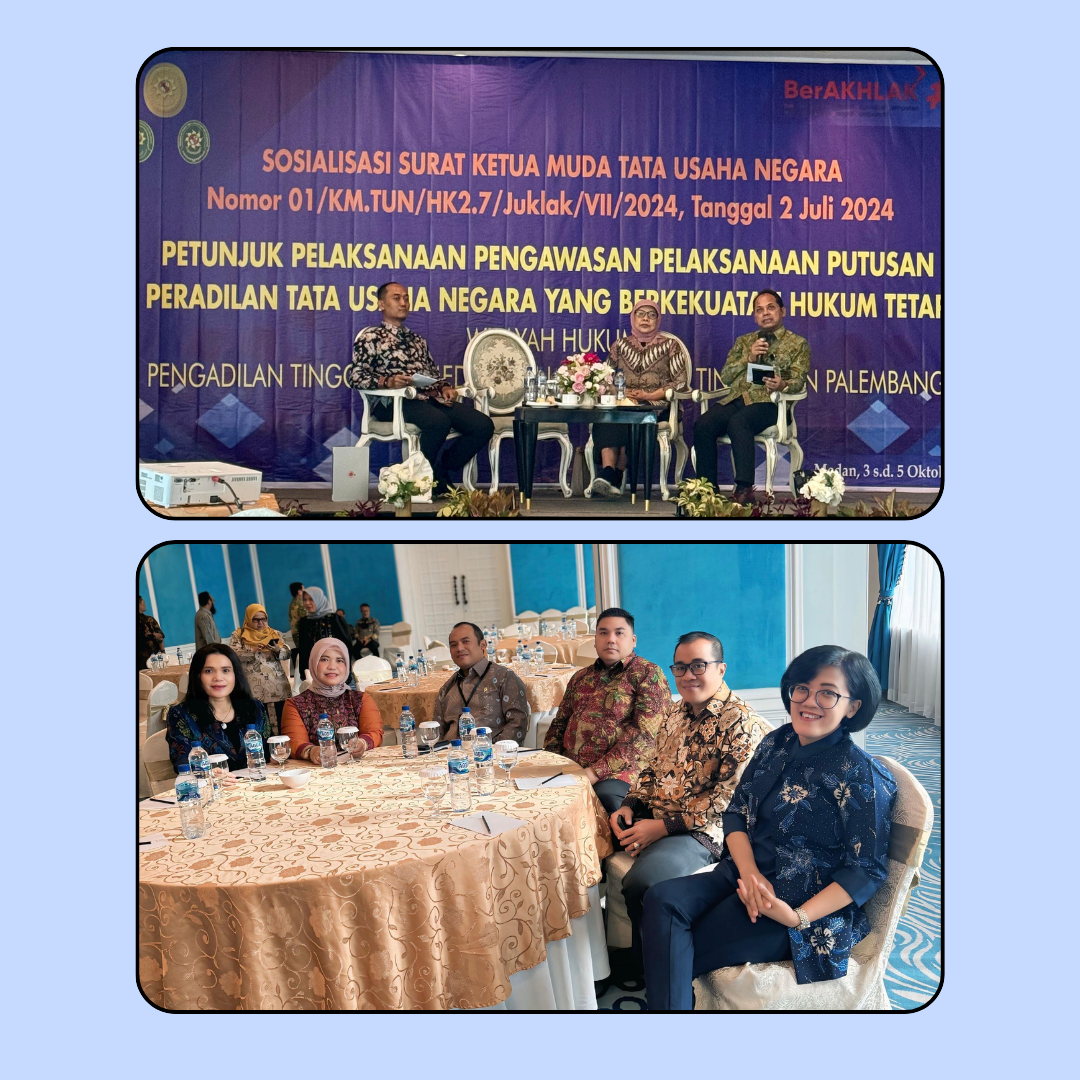 Berdasarkan Surat Tugas Ketua Pengadilan Tinggi Tata Usaha Negara Palembang. Nomor. 847/KPTTUN.W5-TUN/KP7.1/IX/2024. terkait penyelenggaraan kegiatan Sosialisasi Juklak Eksekusi Putusan Tata Usaha Negara.