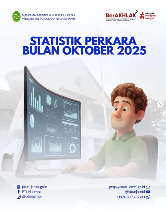 Pengadilan Tata Usaha Negara Jambi dengan ini menyampaikan informasi statistik perkara serta layanan lainnya pada periode bulan Oktober 2025.