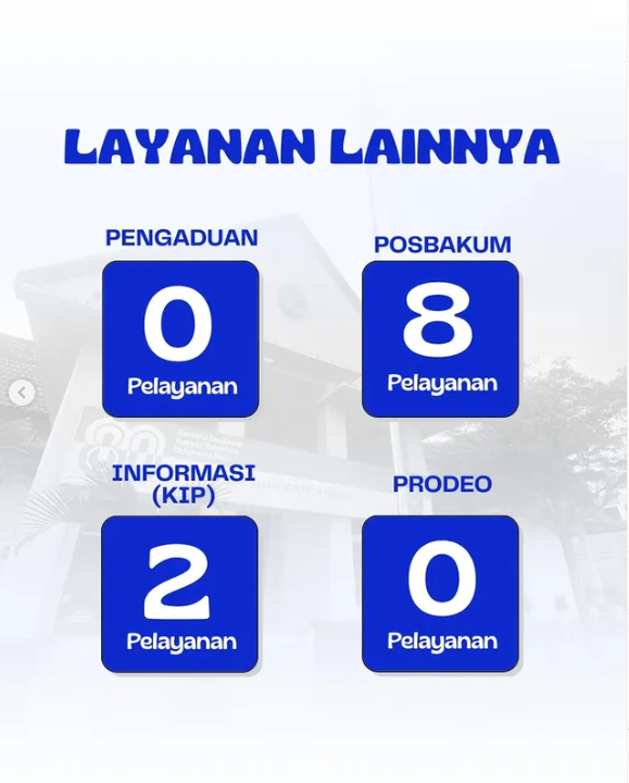 * Pelayanan Posbakum tercatat 8 permohonan.