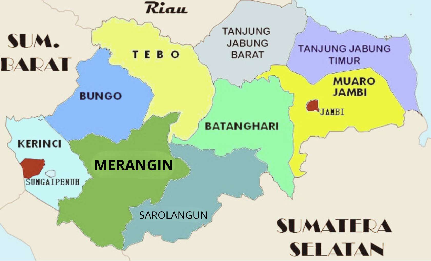 | 8 | Kabupaten Sarolangun | Sarolangun | 5.935,89 | 10 | 9/149 |